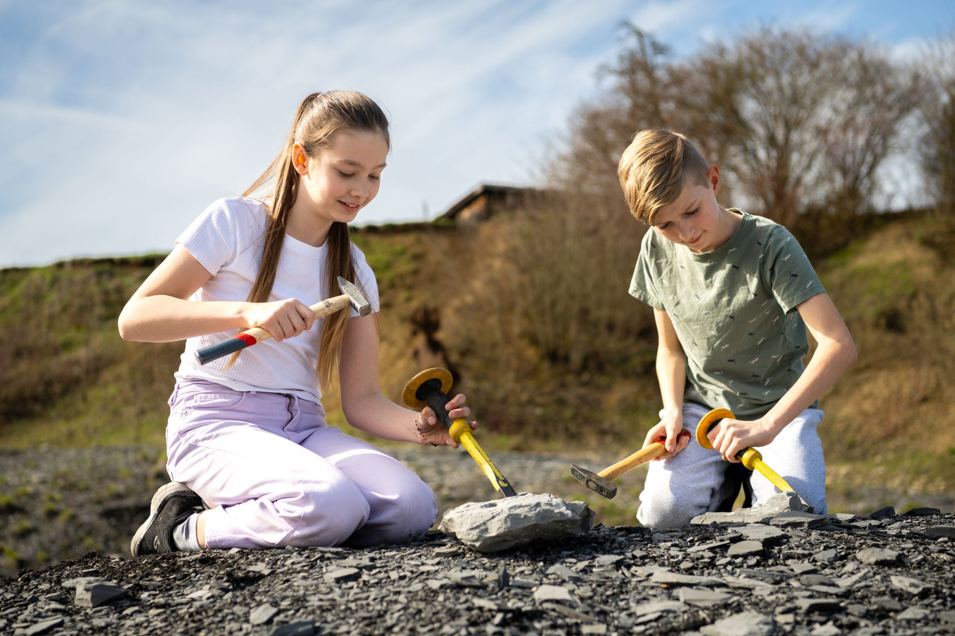 Familie erlebt ein aufregendes Abenteuer im Urweltsteinbruch Holzmaden und entdeckt faszinierende Fossilien und Mineralien. Steinbruch. Wo findet man Fossilien? Im Urweltsteinbruch Holzmaden.