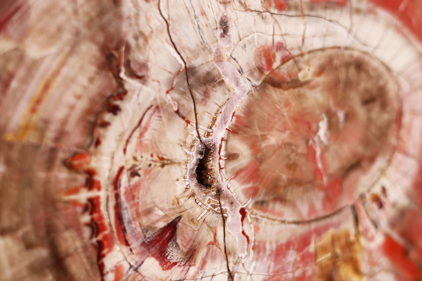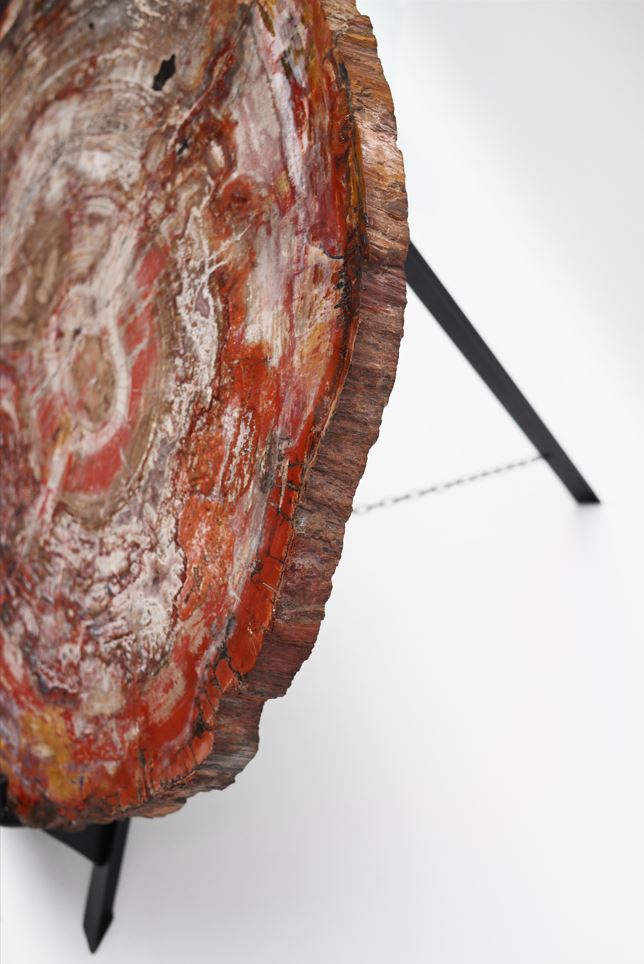 - Explanation: This 220-million-year-old disk of Araucarioxylon arizonicum from Arizona is an absolute masterpiece of nature. The unique combination of colors and the formation of an amethyst geode inside make it a high quality and rare collector's item.