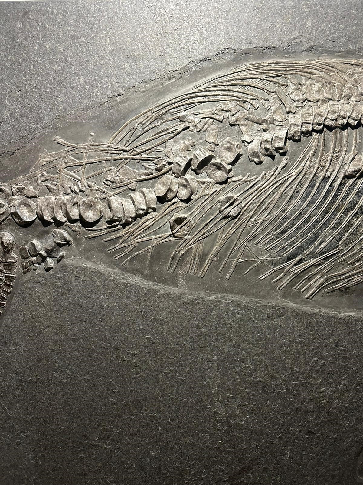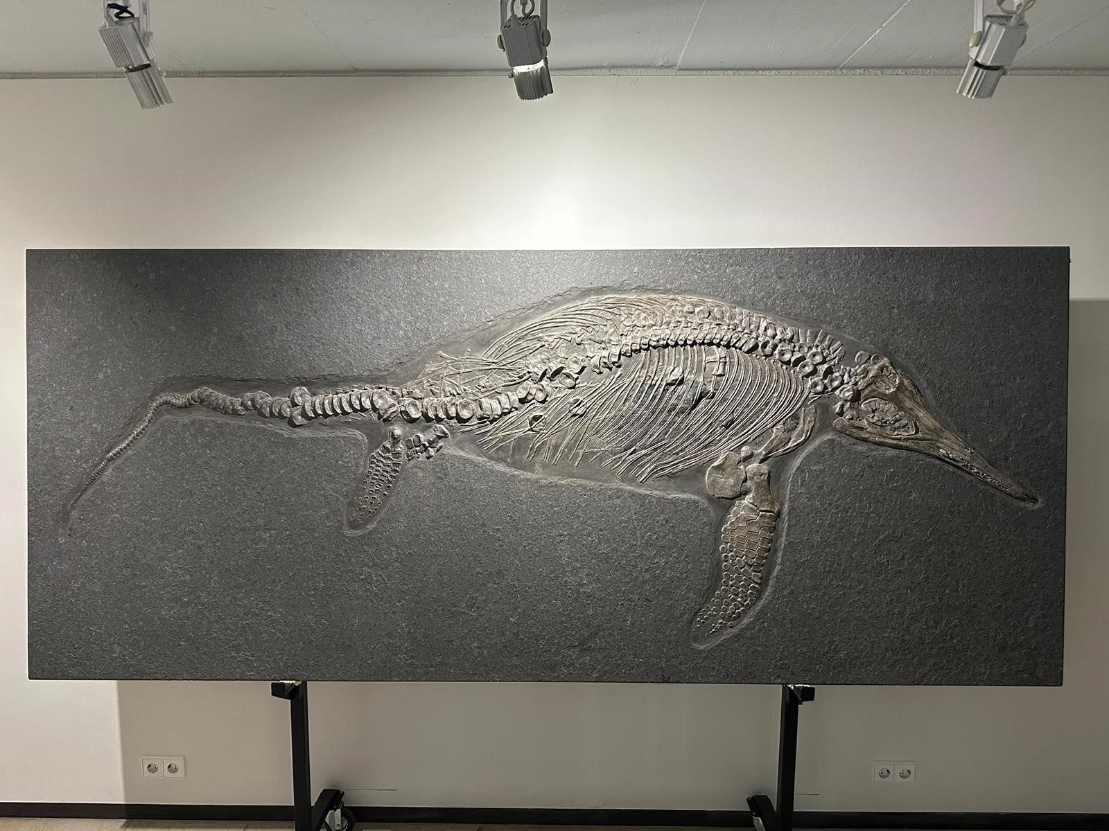 - Zusätzliche Informationen: Ichthyosaurier, eine ausgestorbene Gruppe von Meeresreptilien, waren an ihre aquatische Lebensweise perfekt angepasst und erinnerten in Aussehen und Verhalten an moderne Wale. Diese Tiere lebten vor allem während des Mesozoikums und waren meisterhafte Schwimmer. Ihre Fossilien, insbesondere die aus den Schiefergesteinen Süddeutschlands, sind wegen ihrer außergewöhnlichen Erhaltung und Detailtreue von großer wissenschaftlicher Bedeutung.
